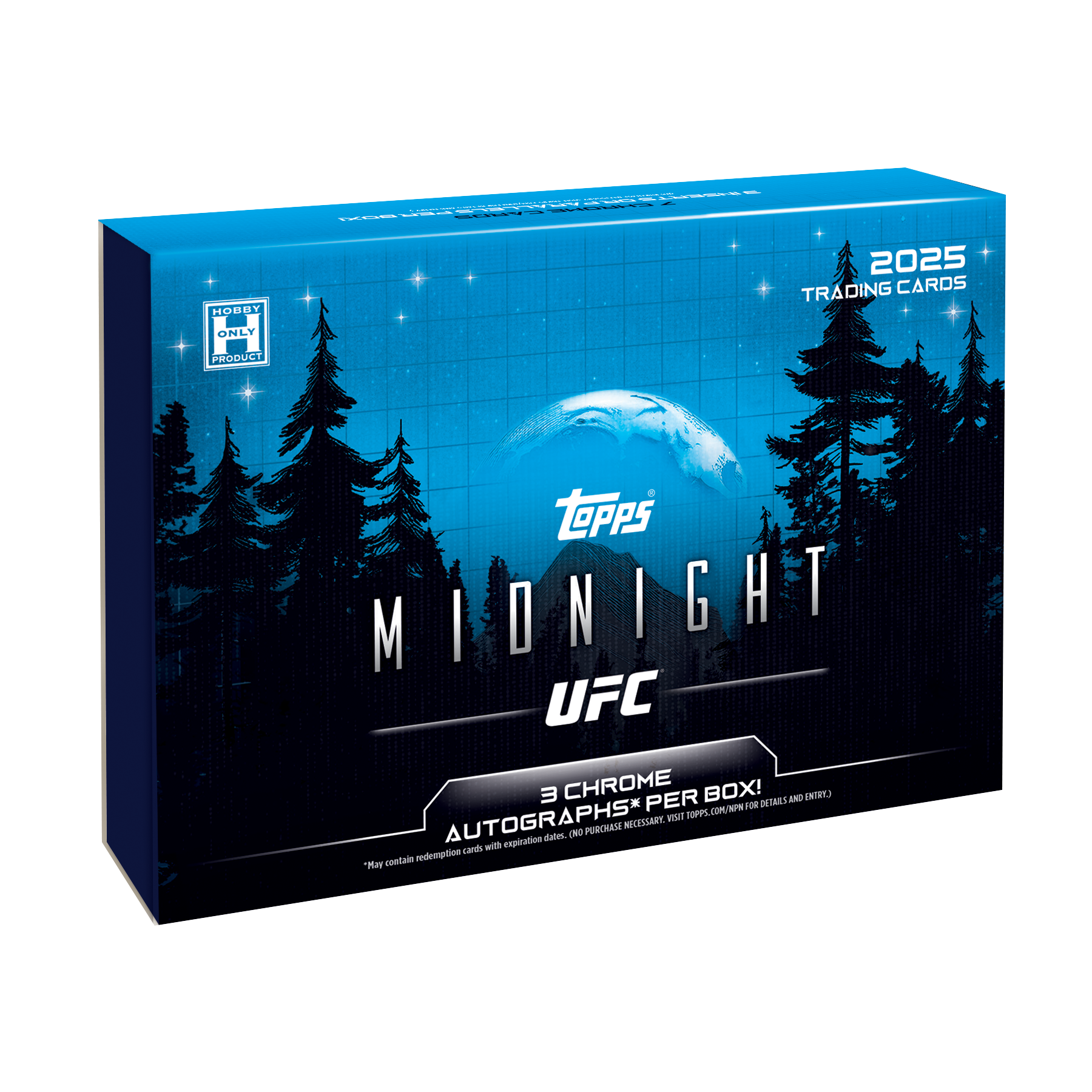 PRODUCT HIGHLIGHTS - Topps Midnight UFC makes its return for 2025, featuring its tantalizing design patterns and a variety of vibrant colors. - Midnight UFC is sure to create a hobby buzz with this year’s release. - Look for autographs and autograph relics of yesterday, today, and tomorrow's top UFC fighters and a collection of short printed inserts. - Build the 100-card Base Set along with a multitude of parallels!